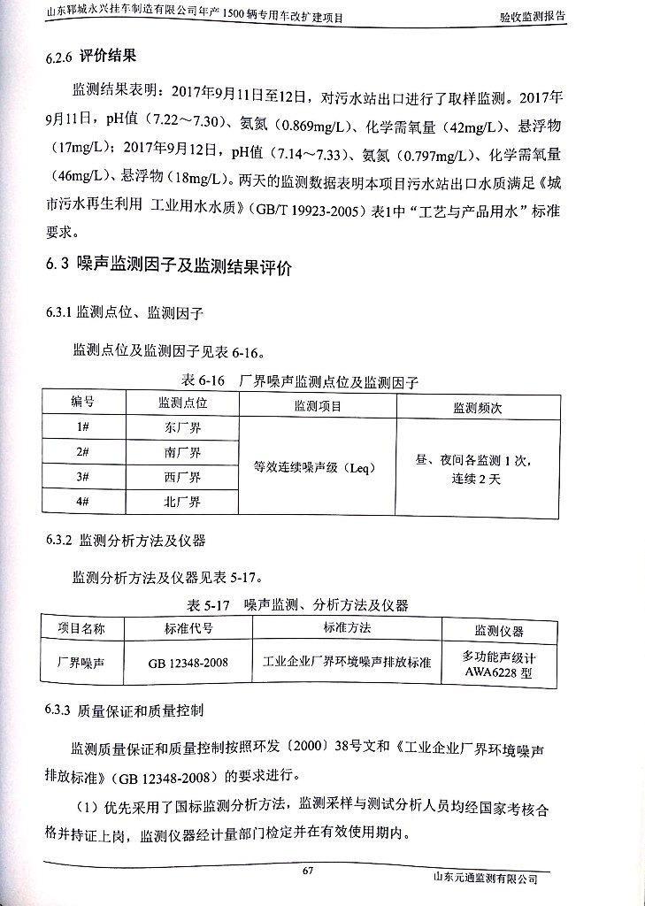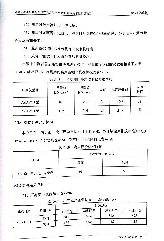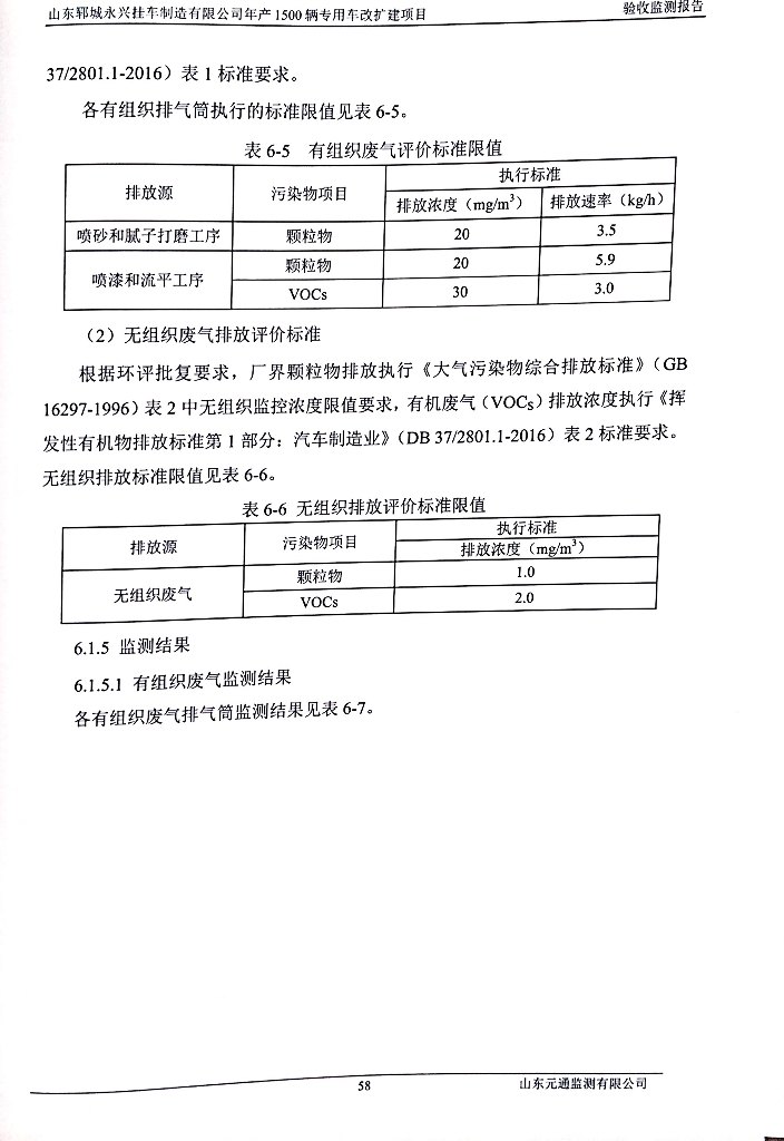 山东郓城永兴挂车制造有限公司年产1500辆专用车改扩建项目验收监测报告