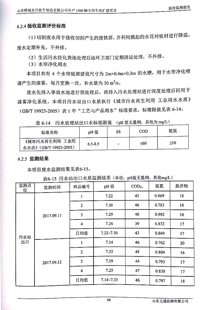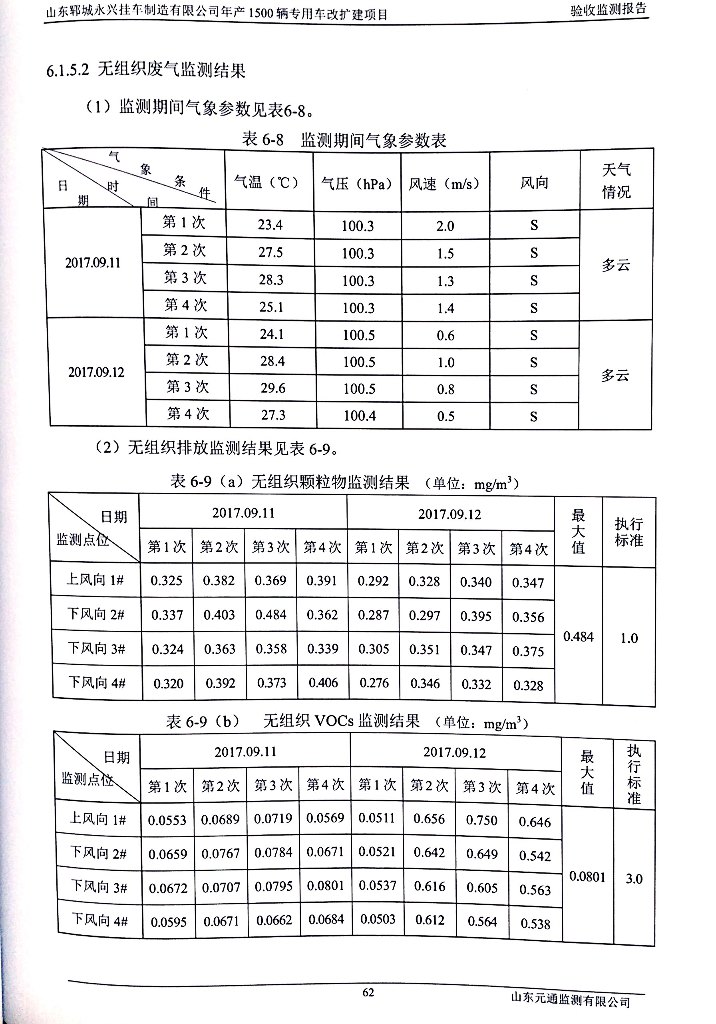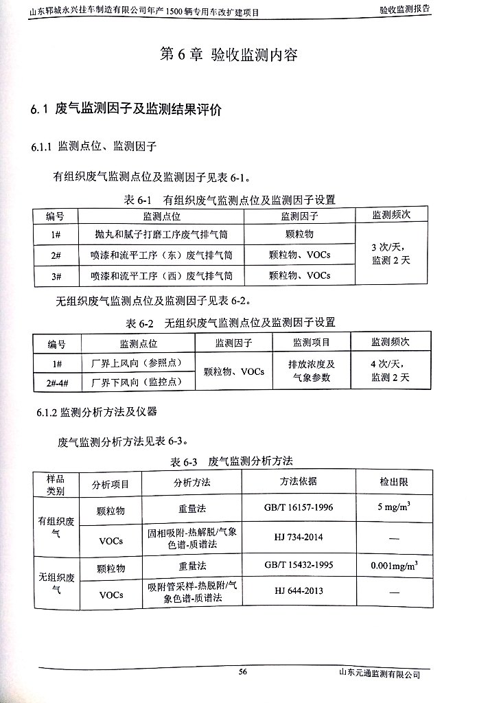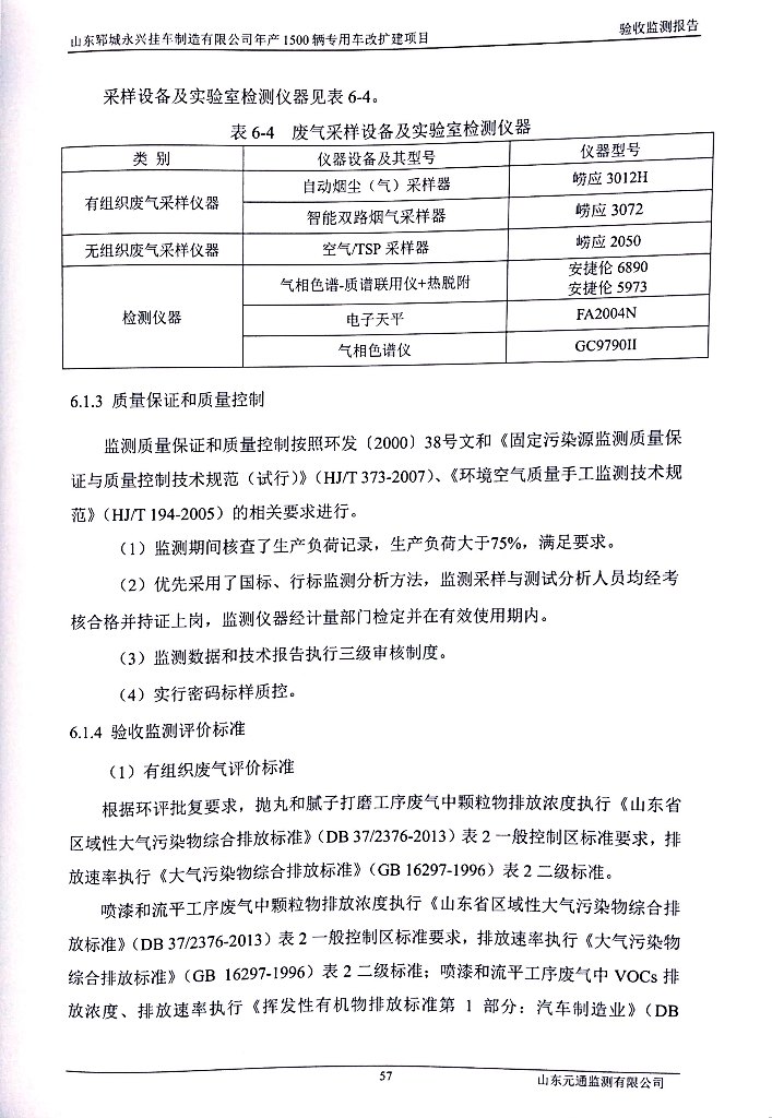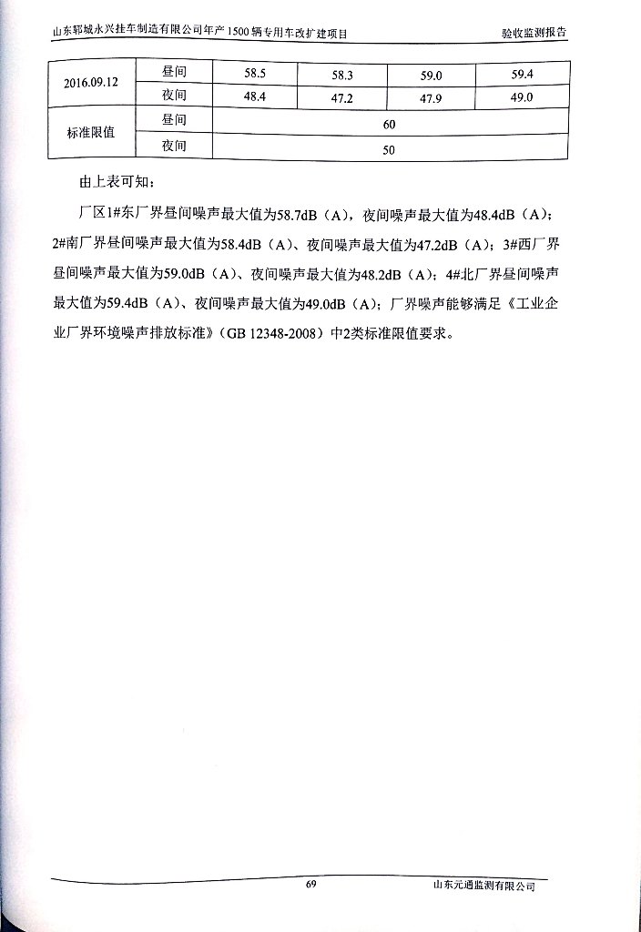 山东郓城永兴挂车制造有限公司年产1500辆专用车改扩建项目验收监测报告